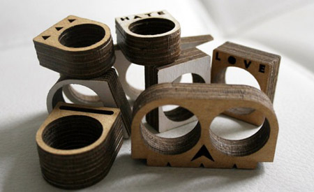 a sua esposa Chrystale Ladouceur e criou uma coleção de anéis cortado a laser.