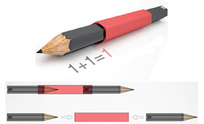 quantidade de novos lápis produzidos, o 1+1=1 é uma alternativa criativa para